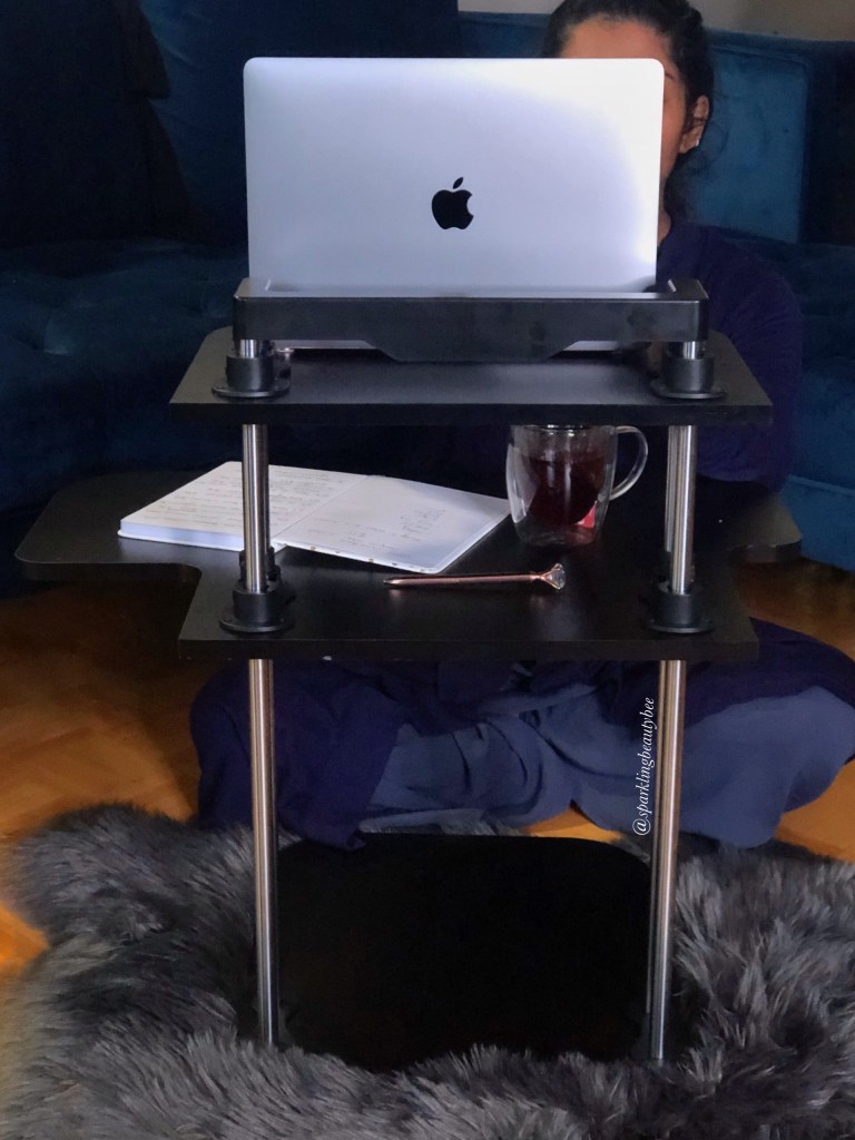 This desk is adjustable and has three different level of shelves so it gives varieties of options to find our best posture. This desk can be easily placed over some other high platform and adjust the laptop in any of the shelves among these three according to our height whatever looks comfortable. So many time it happens that I prefer to work in standing position and this particular desk provides just perfect level to keep the laptop screen on my eye level. If I prefer sitting in the floor still it is a great way to keep the laptop on eye level and work.