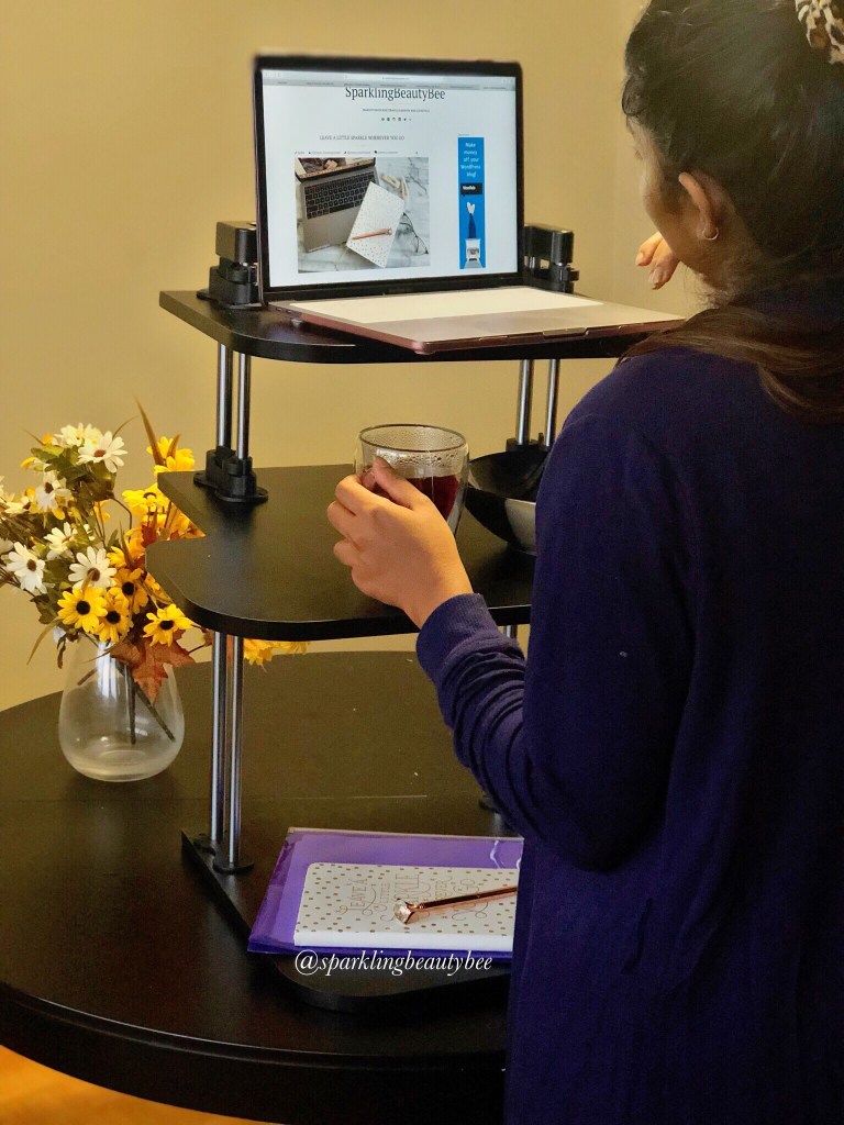 As a blogger and content creator for my Youtube channel I constantly work on my MacBook Pro. Being a blogger is a full time job and working on a computer all day long is quiet stressful specially it has harmful impact on our physical health. Prolong sitting position and having the laptop below eye level often causes back and neck ache. Gradually I have become more regular with my blog posts as the popularity has increased and as a result I spend more time in my computer. It is concerning me about my health as I need to sit a lot of the times bending my neck in certain position. Sitting in front of a reading table in the same position doesn’t always provide prolong comfort. For last couple of days after suffering from some aches and pains I started to think for a healthy option where I can maintain my health without compromising my work.