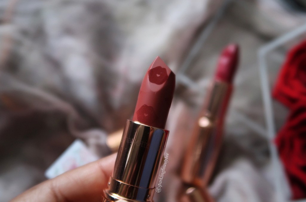 Charlotte Tilbury New Matte Revolution Love Filter Lipsticks are stunning with the cute lip stamps all over. Few days back I posted here about them and I mentioned that it was difficult for me to start using them as they are aesthetically so pleasing and I just did not want to destroy them by using.