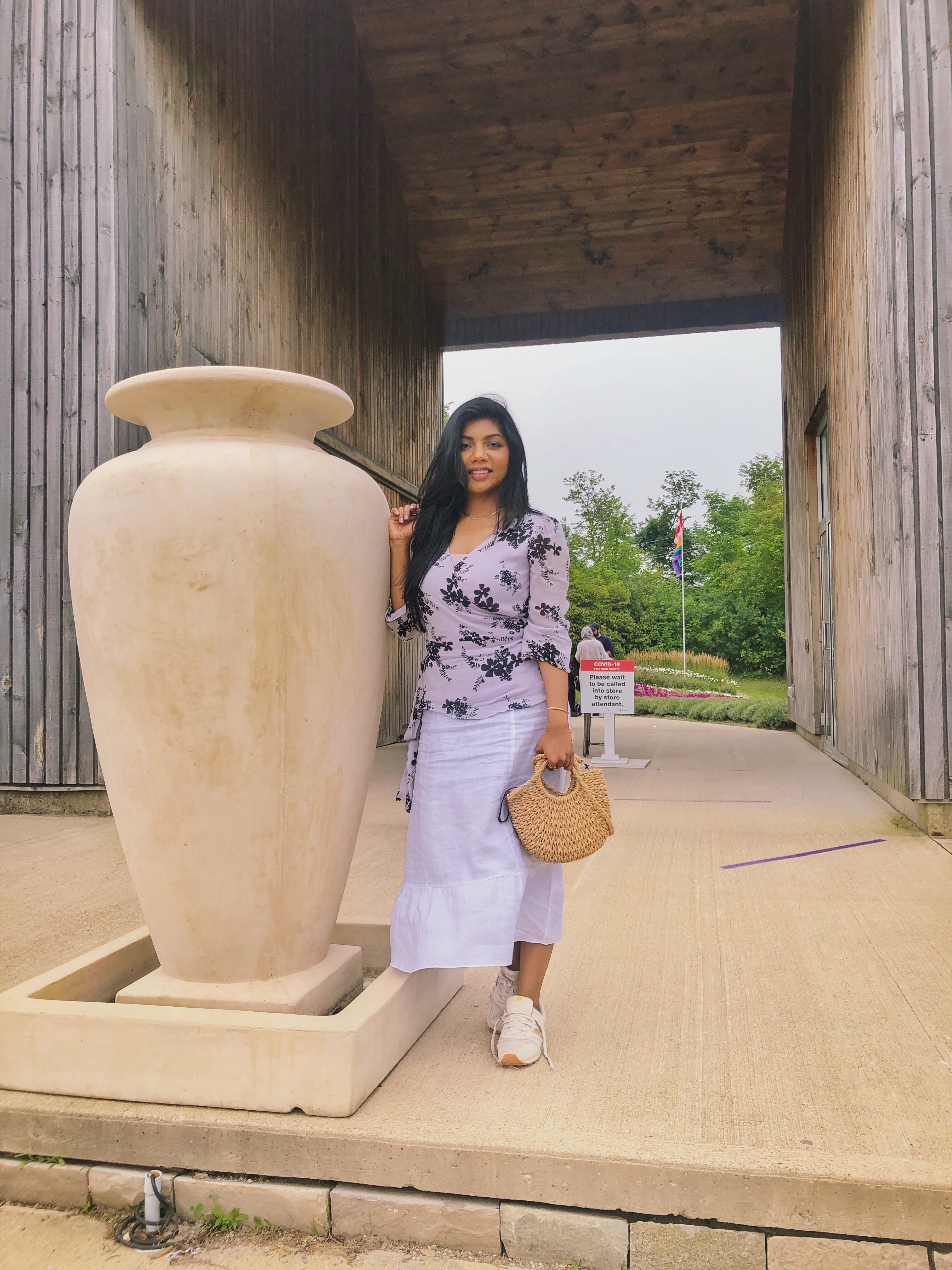 The wrapped top is from Michael kors and was so lucky to find such a pretty lavender top. There are so many other options too. My cute farm bag made by straw brought the complete farm vibe in my opinion.