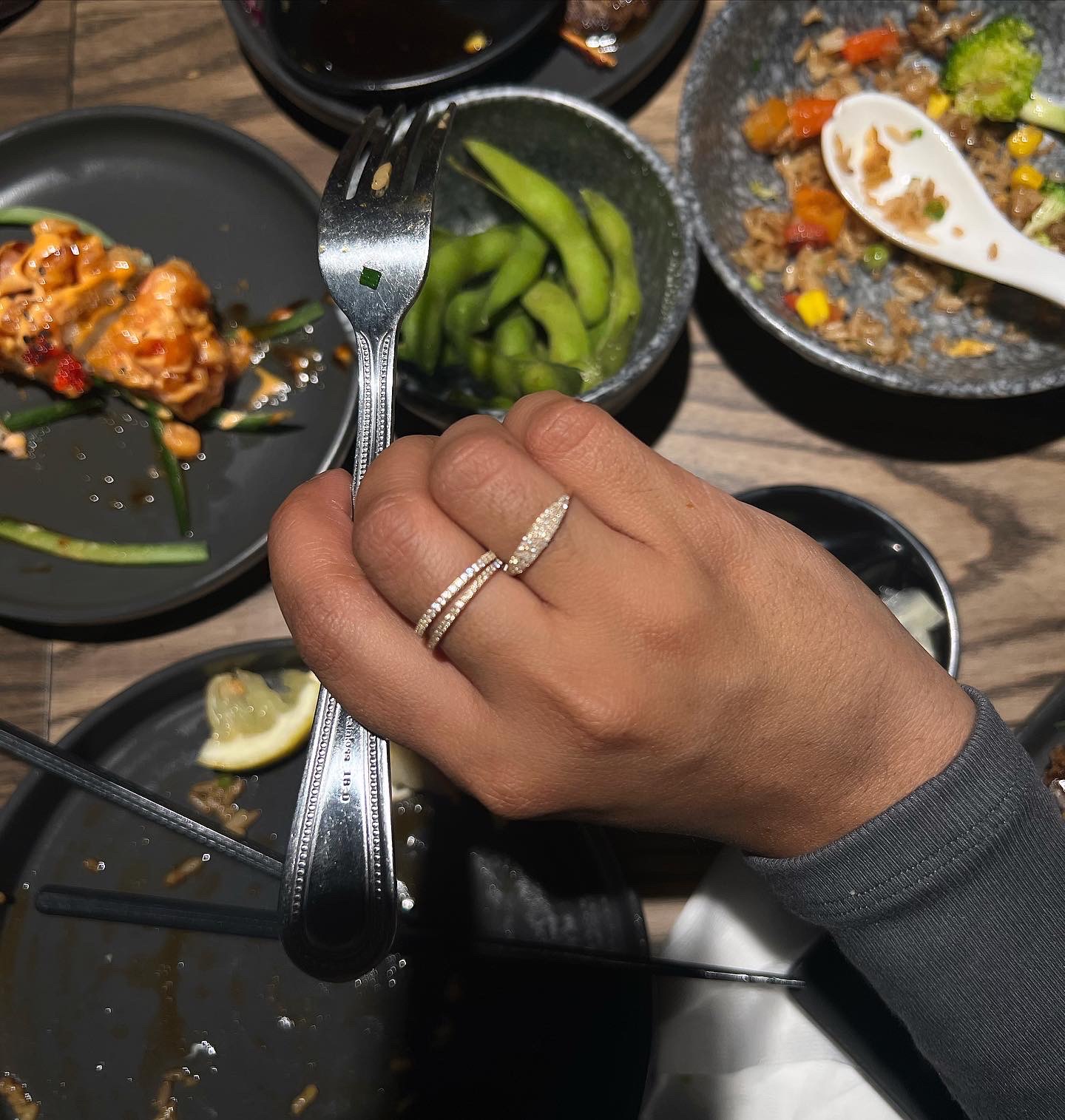 I highly recommend this pave signer ring that you can find here. This is probably my most worn everyday ring and top favourite. it is lightweight and the sparkle is out of this world.
